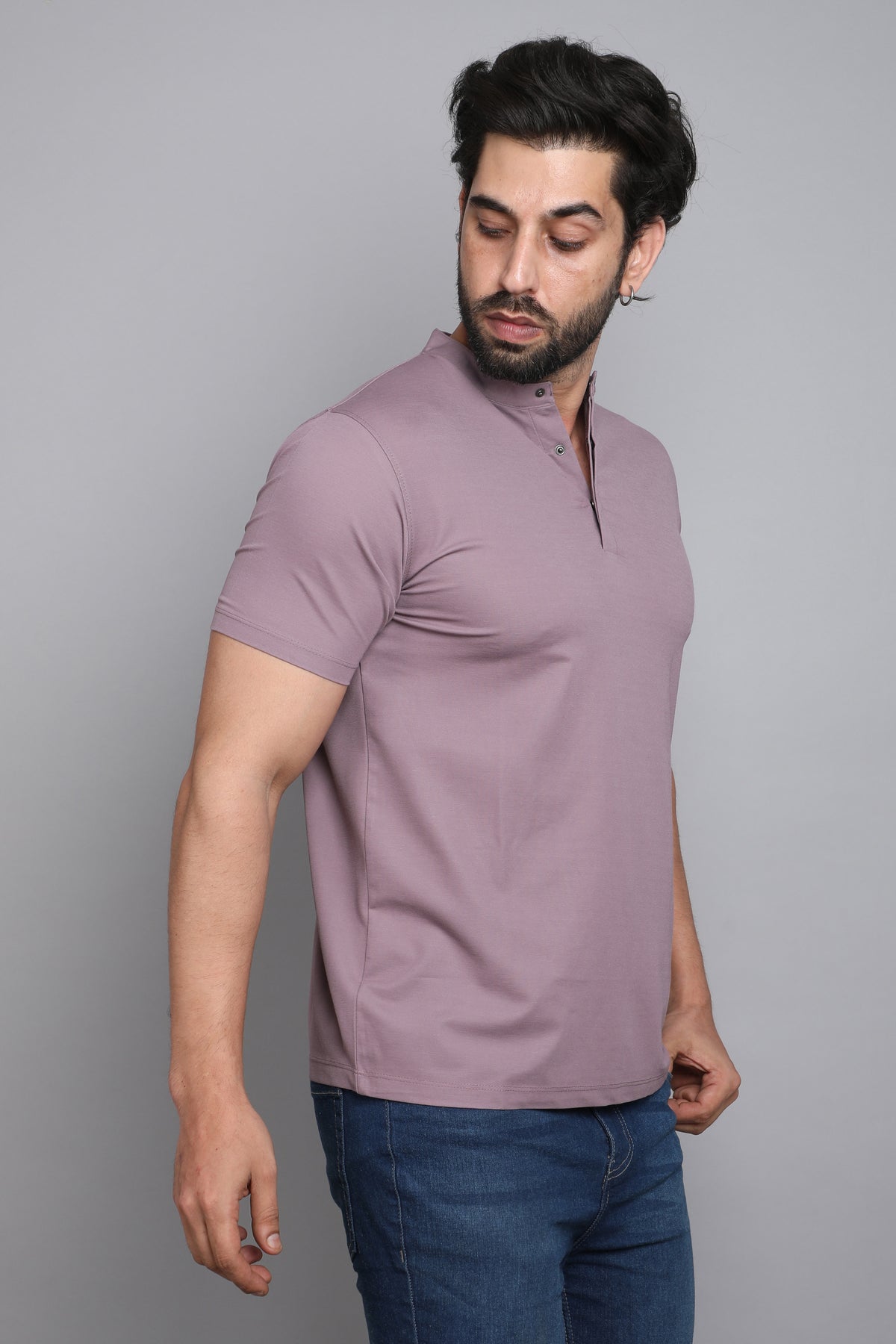 This Cotton Wine Mandarin Collar T-shirt is made of high-quality cotton for a comfortable and soft fit. The mandarin collar adds a touch of sophistication, making it perfect for both casual and formal occasions. Stay stylish and comfortable with this versatile piece.