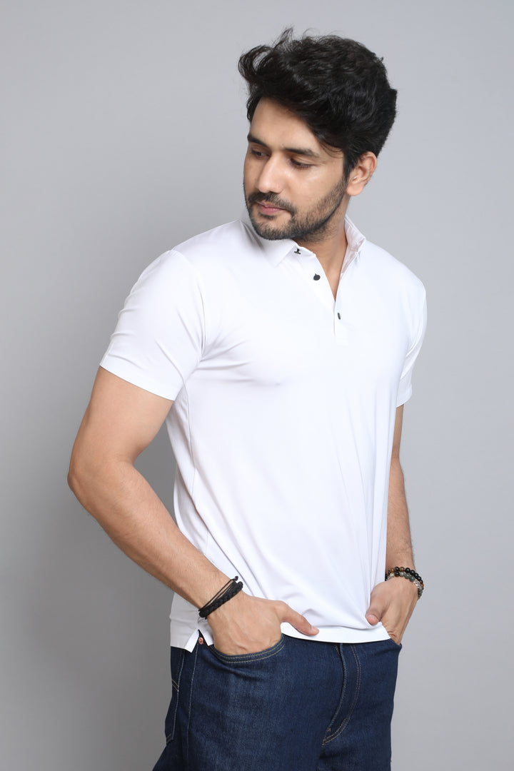 White Stitch Less Polo Tshirt