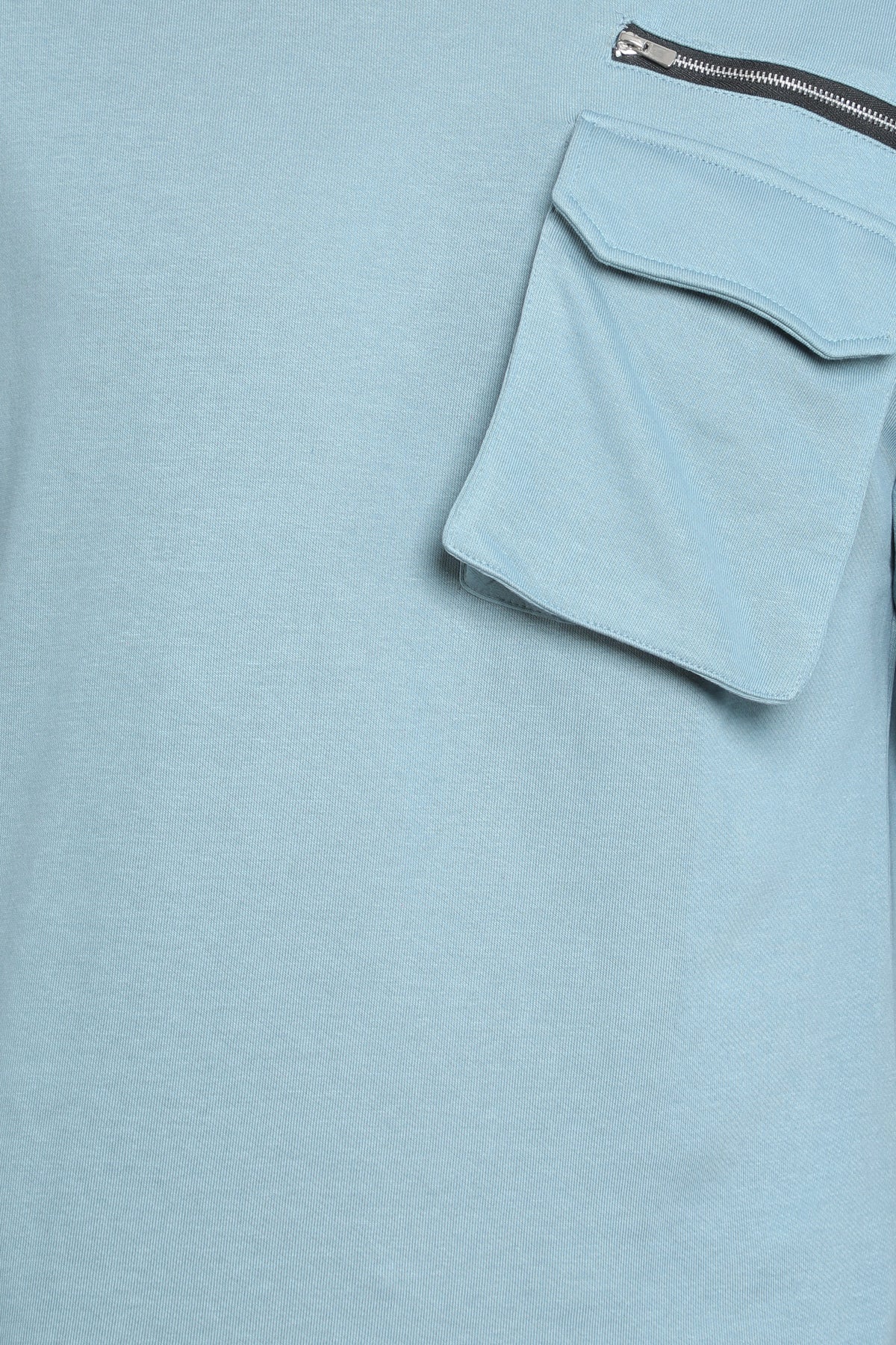 Zip Pocket Light Blue Oversized T-Shirt
